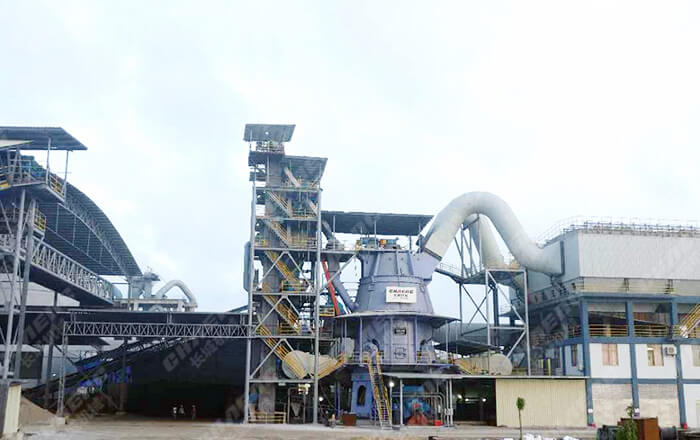 堆放著的礦渣由鏟車取料、喂料,通過皮帶機進行輸送。在輸送過程中,礦渣原料先后經(jīng)由除鐵器和振動篩得到除鐵和篩分,然后通過稱重設備倉、提升機進入立磨機進行粉磨。粉磨后的礦渣借助熱風爐提供的熱風,通過選粉機進行選粉,同時得到烘干。符合細度要求的礦渣粉最后被輸送到收塵器收集、盛放后,由空氣輸送斜槽、提升機進入成品庫中儲存。