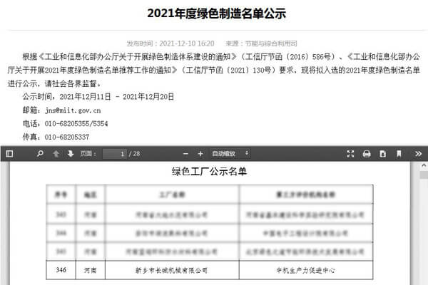 12月,公司成功入選國家工信部綠色工廠公示名單。